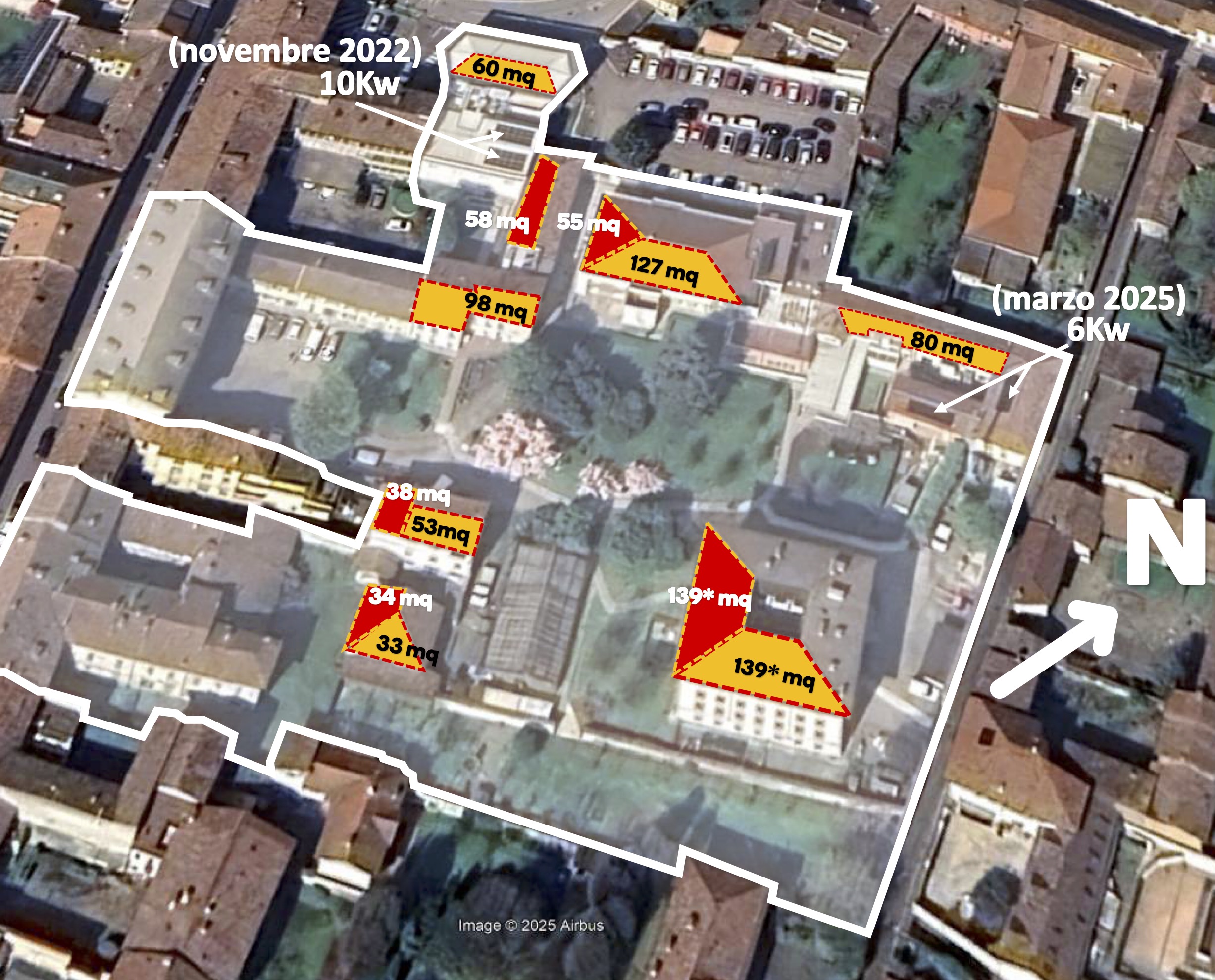 Il progetto prevede la realizzazione di una serie di impianti fotovoltaici tutti allacciati allo stesso contatore e cabina di media tensione intestata alla coop Amicizia, per una potenza di circa 100 kWp. Il nuovo impianto realizzato grazie ad una raccolta di donazioni di cittadini e di prestiti lanciata congiuntamente sia da Legambiente che dalla coop. Con la Comunità Solare è stato richiesto contributo al PNRR per la parte non coperta da finanziamento della Fondazione Comunitaria. La maggior parte (70% circa) dell’energia elettrica rinnovabile prodotta dall’impianto numerosi servizi sociali attivi nel complesso, mentre la rimanente parte andrà in rete a beneficio della Comunità.